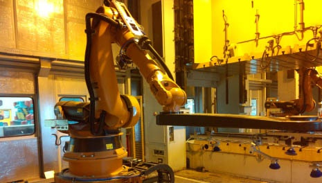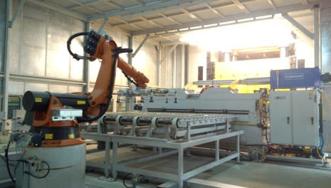 長安某廠沖壓自動化生產(chǎn)線主要包括:機器人拆垛系統(tǒng)、雙料檢測系統(tǒng)、板料輸送系統(tǒng)、板料清洗系統(tǒng)、視覺對中系統(tǒng)、機器人上料系統(tǒng)、線間機器人傳送系統(tǒng)、線尾下料輸送系統(tǒng)、整線封閉防護及照明系統(tǒng)、ADC(模具自動化更換)系統(tǒng)、控制系統(tǒng)等。 線間采用機器人集成外部伺服滑臺系統(tǒng)實現(xiàn)大間距壓機間的板件傳送;整線壓機配置模具自動化夾緊器,實現(xiàn)ADC(模具自動化更換)功能,縮短換模時間、提升生產(chǎn)效率; 自動化生產(chǎn)線采用整線隔音封閉防護;有效的實現(xiàn)自動化設(shè)備的隔離防塵、隔音降噪的功能,并且使得整套自動化生產(chǎn)線整潔、美觀、大氣。 自動化生產(chǎn)線壓機(單動)滑塊行程次數(shù)為12 SPM,汽車側(cè)圍、門內(nèi)板等中大型沖壓件生產(chǎn)節(jié)拍達6 SPM,整線自動化開動率≥98%。